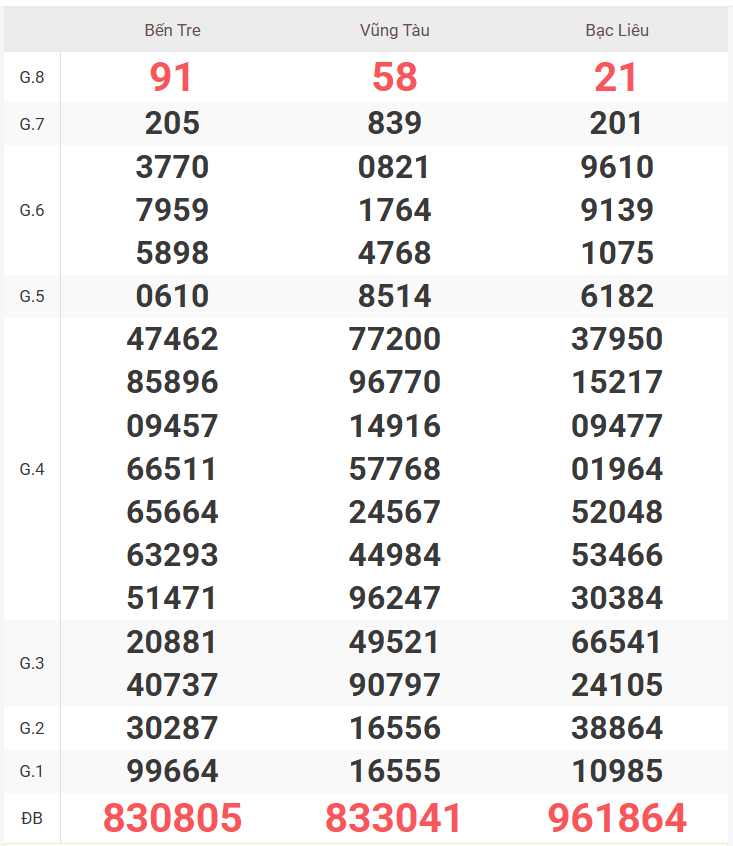 – Thứ 6 do đài Vĩnh Long, Bình Dương, Trà Vinh mở thưởng.