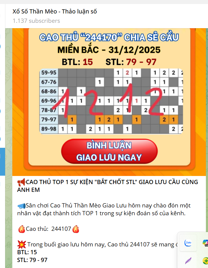 Nếu bạn đang tìm một kênh Telegram uy tín để học hỏi, theo dõi cầu chuẩn và tăng cơ hội trúng lô, Thần Mèo chính là điểm đến lý tưởng. Đừng bỏ lỡ cơ hội giao lưu cùng các cao thủ, cập nhật số chuẩn mỗi ngày!