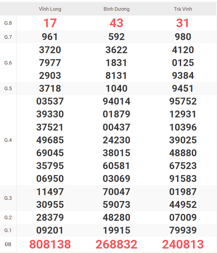 – Thứ 6 do đài Vĩnh Long, Bình Dương, Trà Vinh mở thưởng.