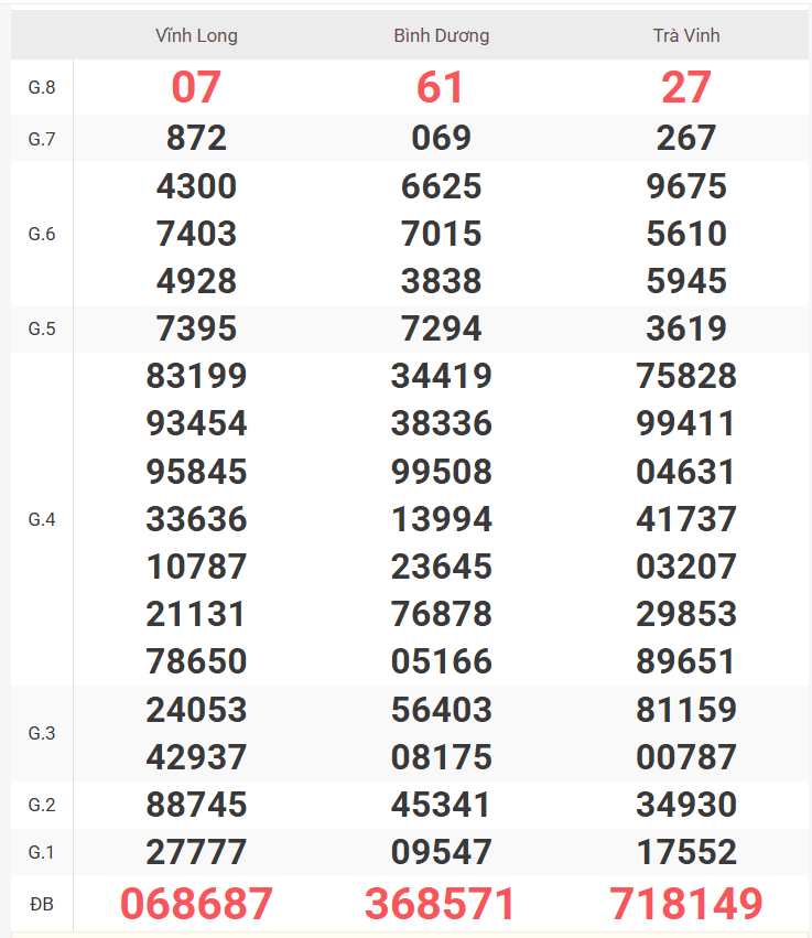 – Thứ 6 do đài Vĩnh Long, Bình Dương, Trà Vinh mở thưởng.