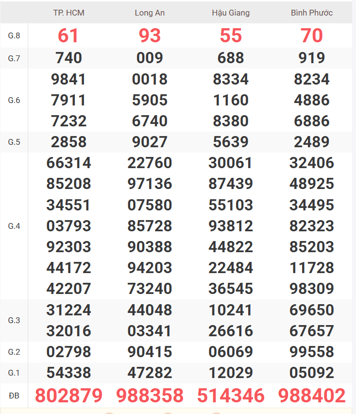 – Thứ 7 do 4 đài quay số là TP Hồ Chí Minh, Long An, Bình Phước, Hậu Giang phát hành.