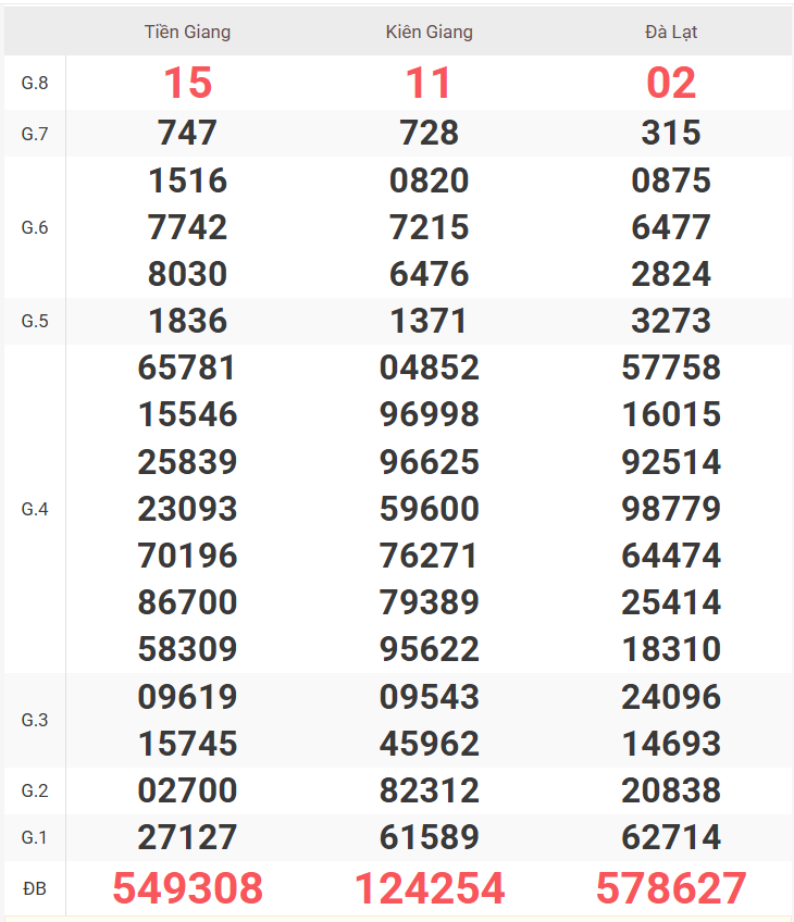 – Chủ nhật được đài Tiền Giang, Kiên Giang, Đà Lạt Lâm Đồng mở thưởng.