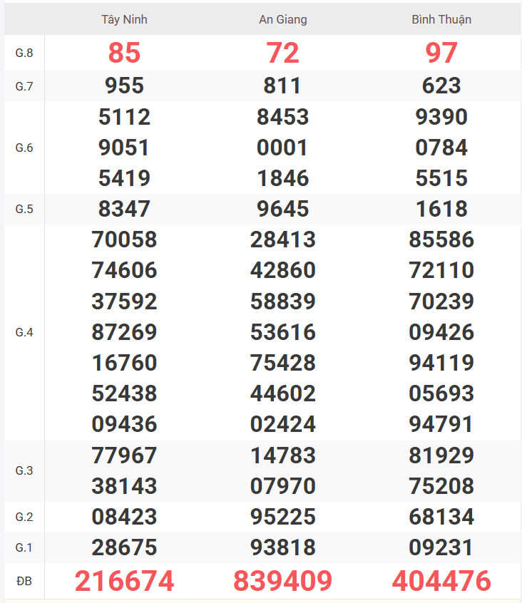 – Thứ 6 do đài Vĩnh Long, Bình Dương, Trà Vinh mở thưởng.