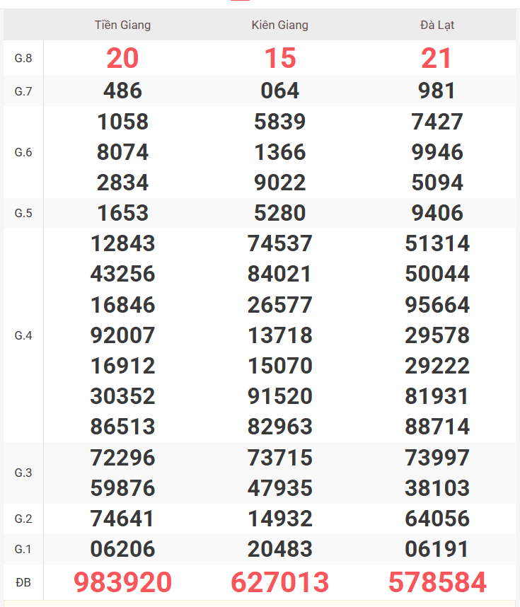 – Chủ nhật được đài Tiền Giang, Kiên Giang, Đà Lạt Lâm Đồng mở thưởng.
