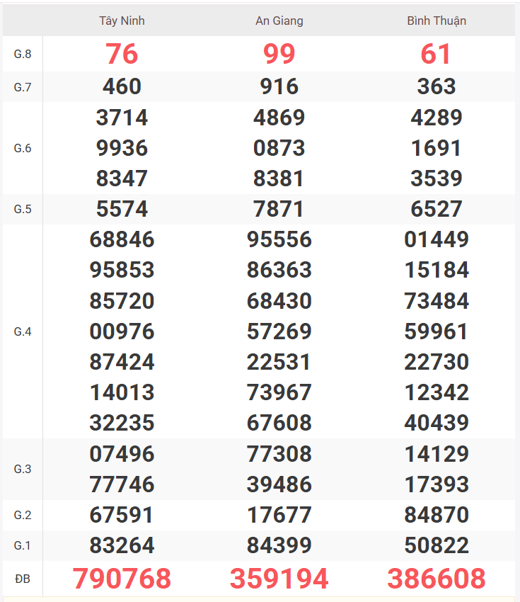 – Thứ 6 do đài Vĩnh Long, Bình Dương, Trà Vinh mở thưởng.