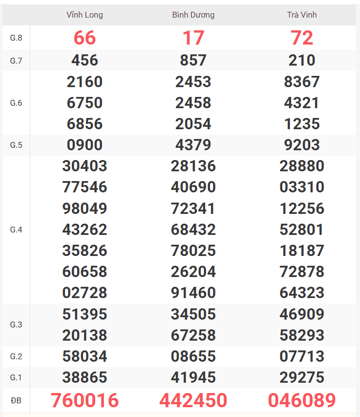 – Thứ 6 do đài Vĩnh Long, Bình Dương, Trà Vinh mở thưởng.