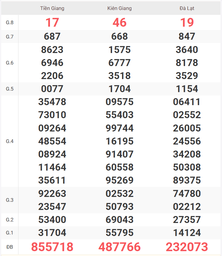– Chủ nhật được đài Tiền Giang, Kiên Giang, Đà Lạt Lâm Đồng mở thưởng.