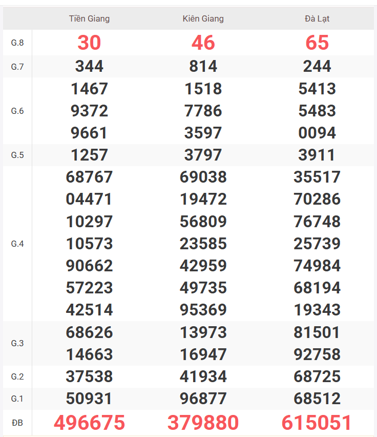 – Chủ nhật được đài Tiền Giang, Kiên Giang, Đà Lạt Lâm Đồng mở thưởng.