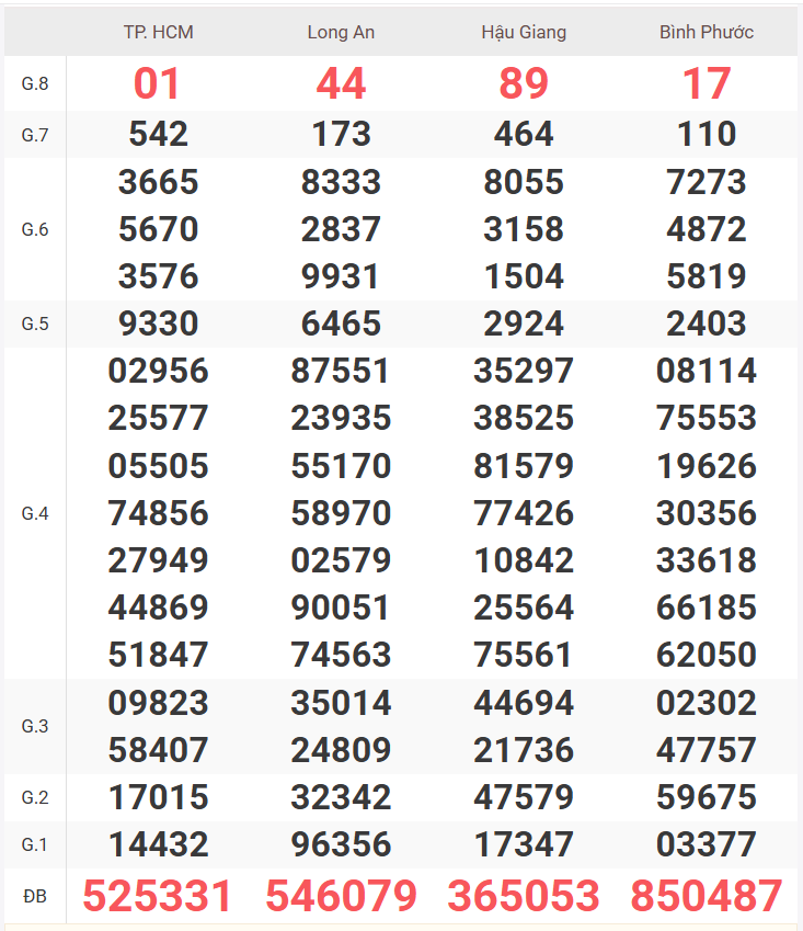 Cùng xem lại bảng kết quả XSMN kì trước (bảng KQXS miền Nam tuần trước) nhé!