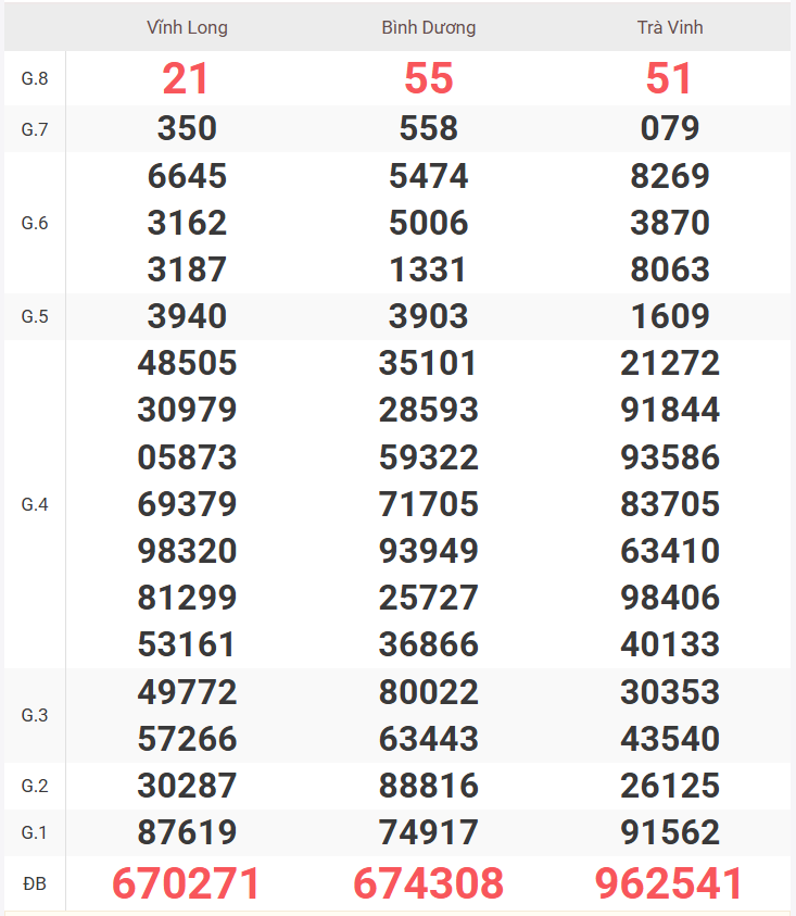 – Thứ 6 do đài Vĩnh Long, Bình Dương, Trà Vinh mở thưởng.