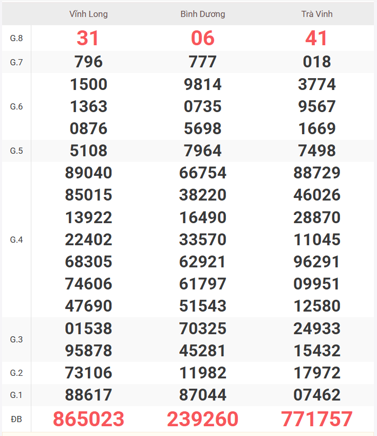 – Thứ 6 do đài Vĩnh Long, Bình Dương, Trà Vinh mở thưởng.