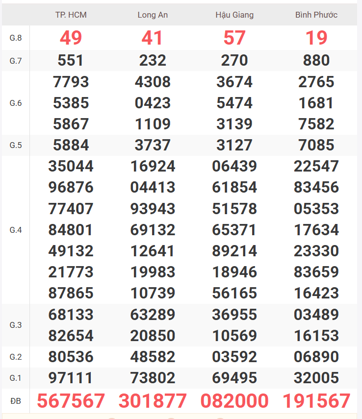 – Thứ 7 do 4 đài quay số là TP Hồ Chí Minh, Long An, Bình Phước, Hậu Giang phát hành.