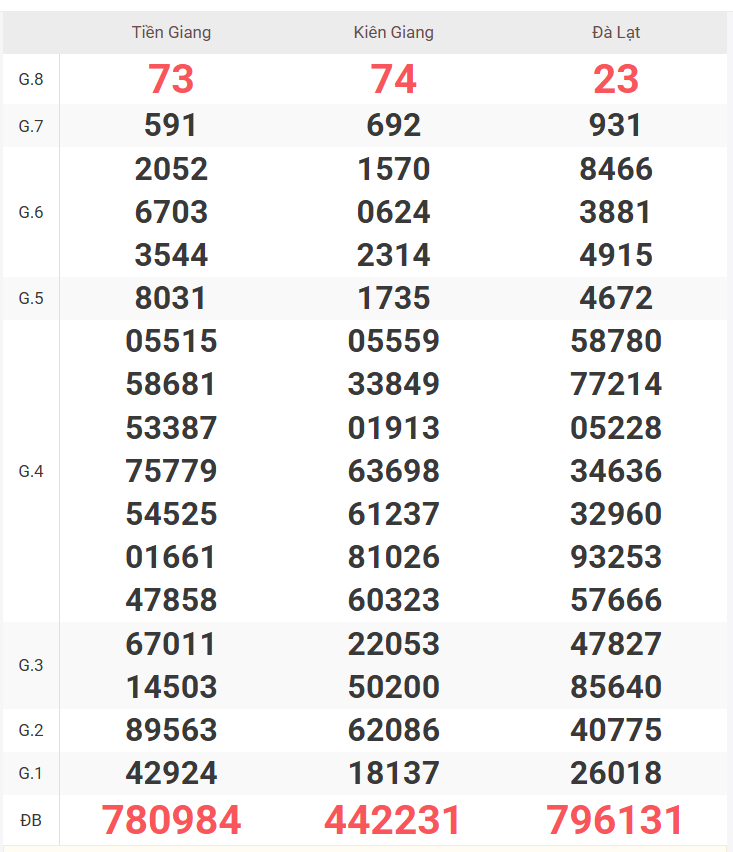 – Chủ nhật được đài Tiền Giang, Kiên Giang, Đà Lạt Lâm Đồng mở thưởng.