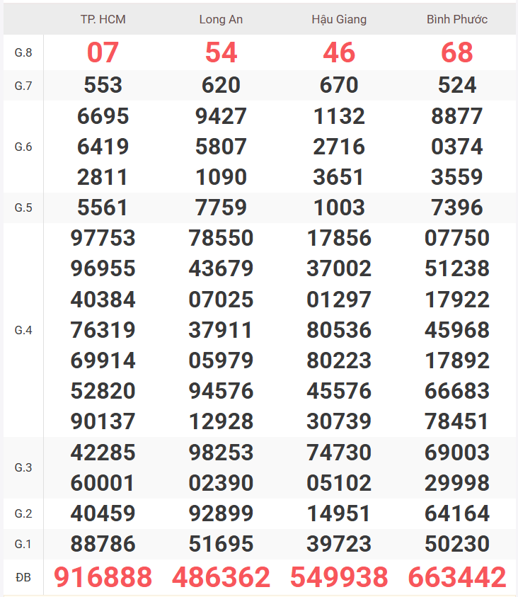 – Thứ 7 do 4 đài quay số là TP Hồ Chí Minh, Long An, Bình Phước, Hậu Giang phát hành.