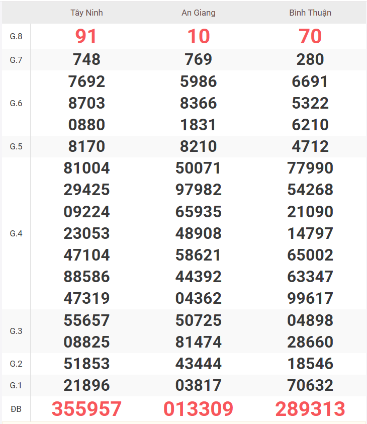 – Thứ 6 do đài Vĩnh Long, Bình Dương, Trà Vinh mở thưởng.