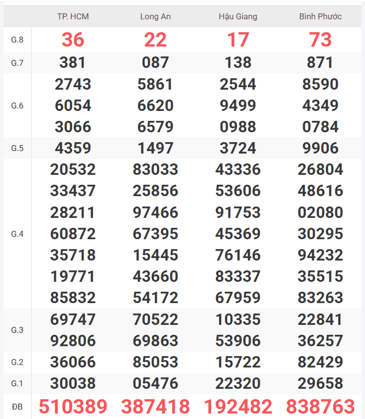 – Thứ 7 do 4 đài quay số là TP Hồ Chí Minh, Long An, Bình Phước, Hậu Giang phát hành.