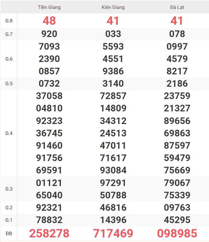 – Thứ 6 do đài Vĩnh Long, Bình Dương, Trà Vinh mở thưởng.
