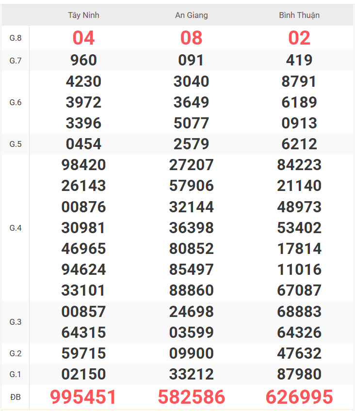 – Thứ 6 do đài Vĩnh Long, Bình Dương, Trà Vinh mở thưởng.