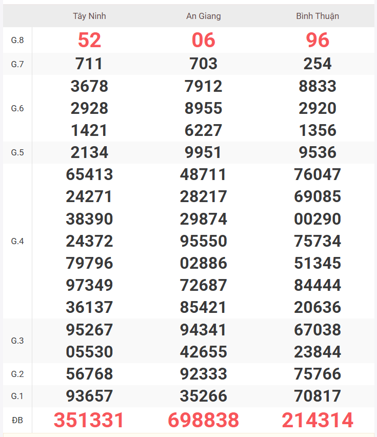 – Thứ 6 do đài Vĩnh Long, Bình Dương, Trà Vinh mở thưởng.