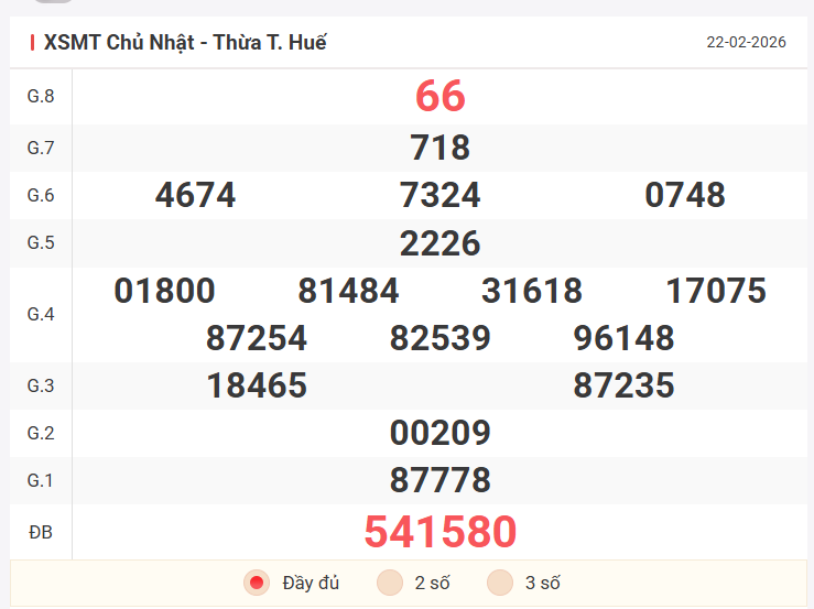 Cùng xem lại bảng kết quả XSMT kỳ trước 22/2/2026: