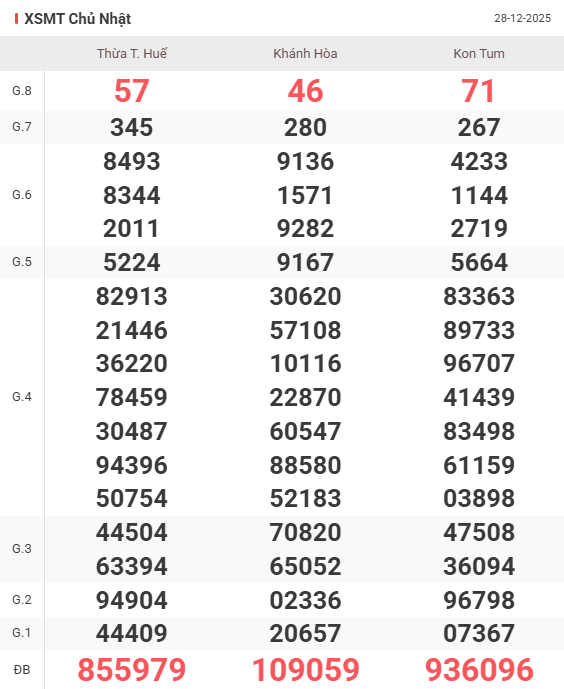 Cùng xem lại bảng kết quả XSMT kỳ trước 28/12/2025: