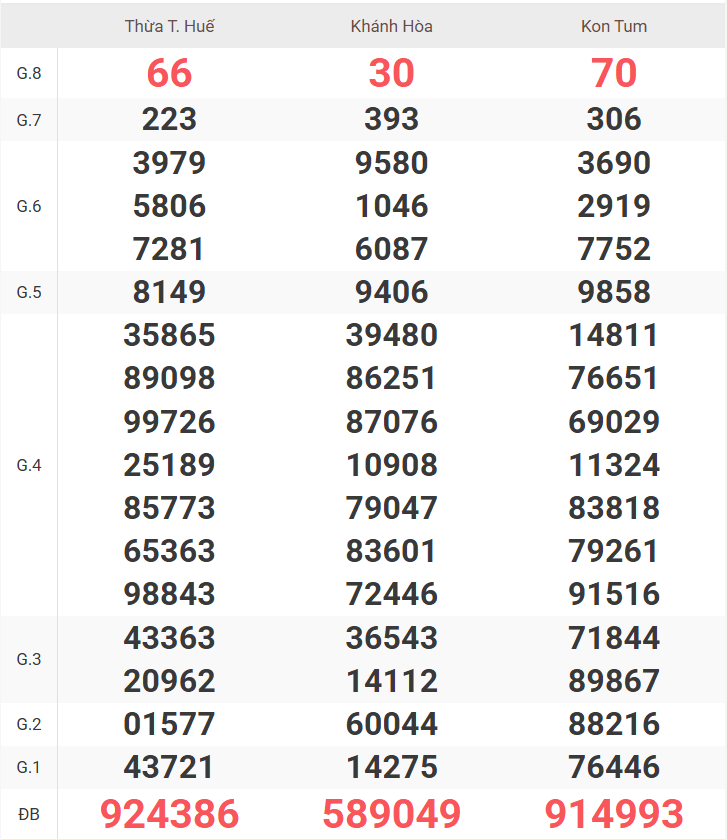 | Giải 8 | 21 |