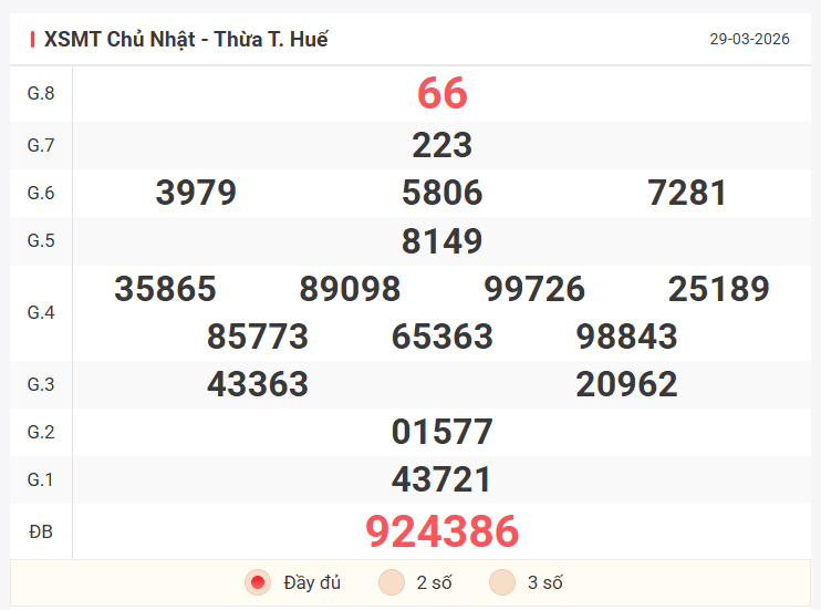 Cùng xem lại bảng kết quả XSMT kỳ trước 29/3/2026: