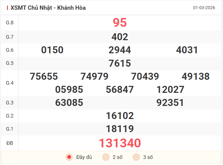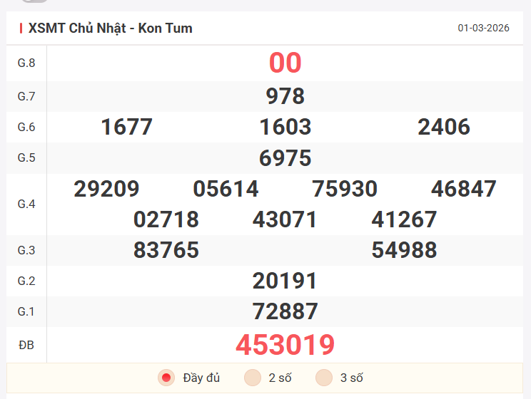 Cùng xem lại bảng kết quả XSMT kỳ trước 1/3/2026: