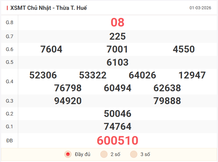 Lời kết chốt số XSMT chủ nhật, ngày 08/03/2026: