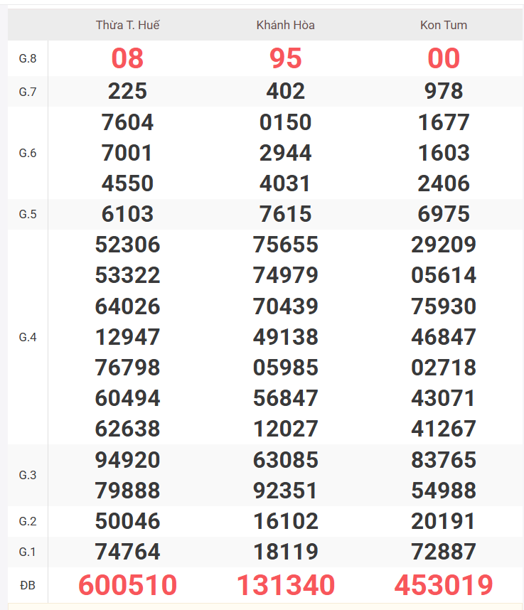| Giải 8 | 57 |