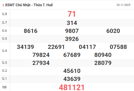 Cùng xem lại bảng kết quả XSMT kỳ trước 02/11/2025: