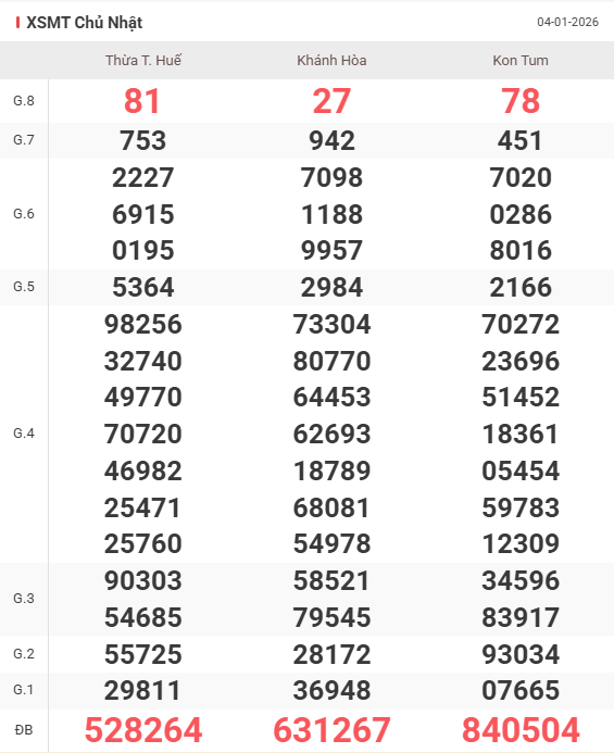 Dự đoán, soi cầu Xổ Số Miền Trung chủ nhật ngày 11/01/2026 của tỉnh Thừa Thiên Huế, Khánh Hòa và Kon Tum. Bật mí số có tỉ lệ về nhiều nhất trong xsmt trực tiếp hôm nay 11/01– Chọn ra các cặp xỉu chủ đẹp, bao lô bạch thủ, song thủ lô cho xoso miền Trung ngày 11/01. Soi lô đề XSMT chính xác 100%.