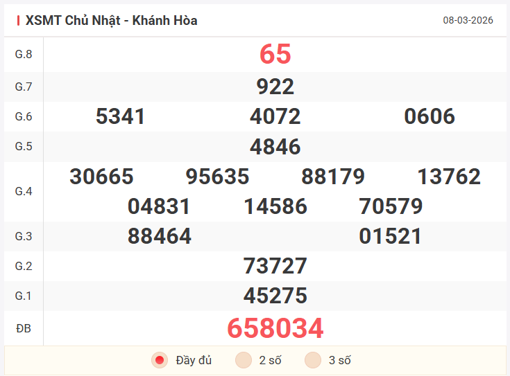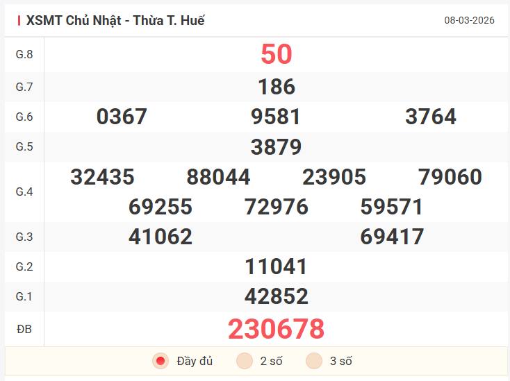 Cùng xem lại bảng kết quả XSMT kỳ trước 8/3/2026: