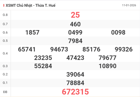 Cùng xem lại bảng kết quả XSMT kỳ trước 11/01/2025: