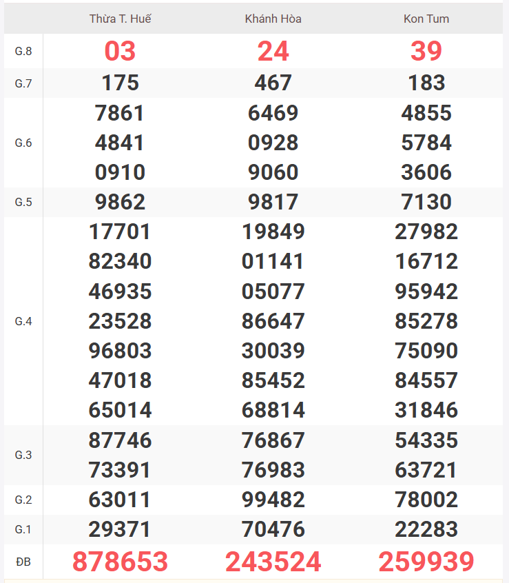 | Giải 8 | 36 |