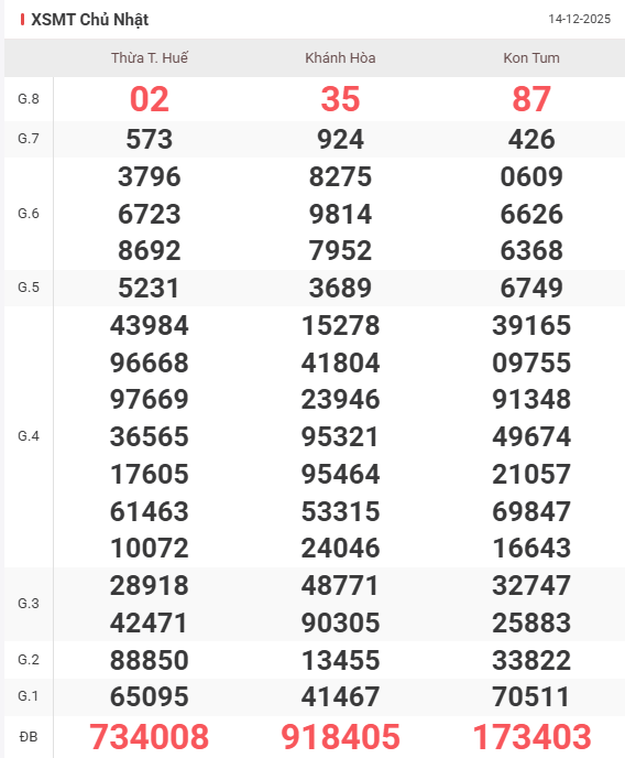 Cùng xem lại bảng kết quả XSMT kỳ trước 14/12/2025: