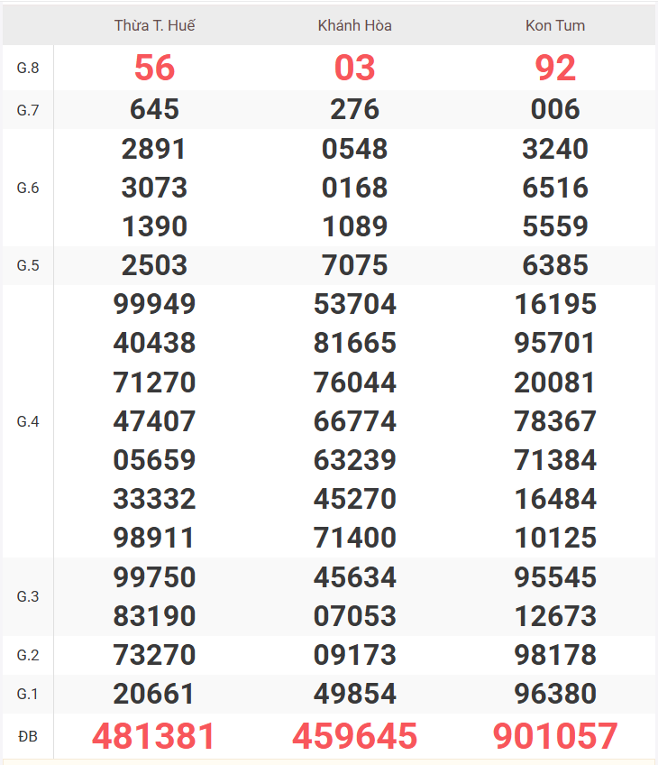 | Giải 8 | 36 |