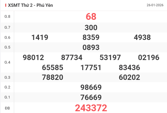 | Giải 8 | 53 |