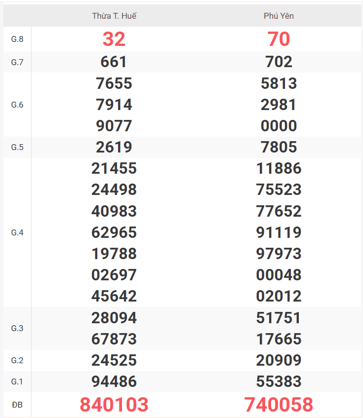 | Giải 8 | 62 |
