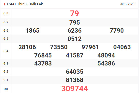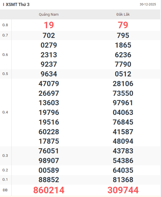 Cùng xem lại bảng kết quả XSMT kỳ trước 30/12/2025: