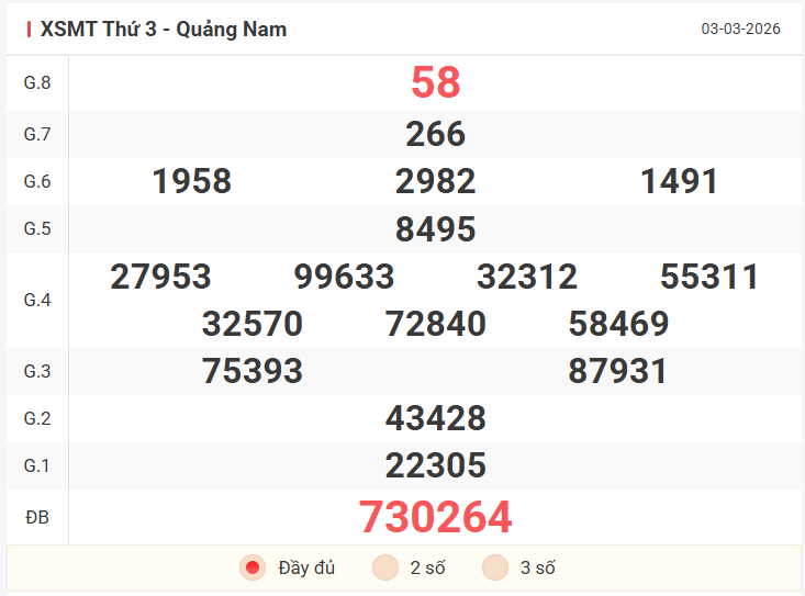 Cùng xem lại bảng kết quả XSMT kỳ trước 3/3/2026: