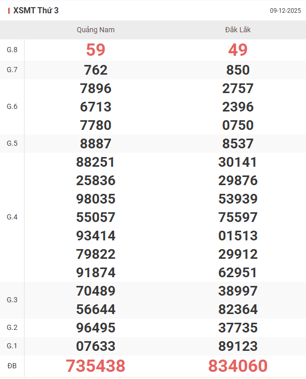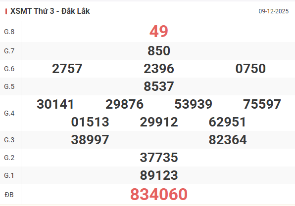 Cùng xem lại bảng kết quả XSMT kỳ trước 09/12/2025: