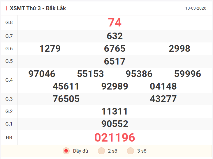Cùng xem lại bảng kết quả XSMT kỳ trước 10/03/2026: