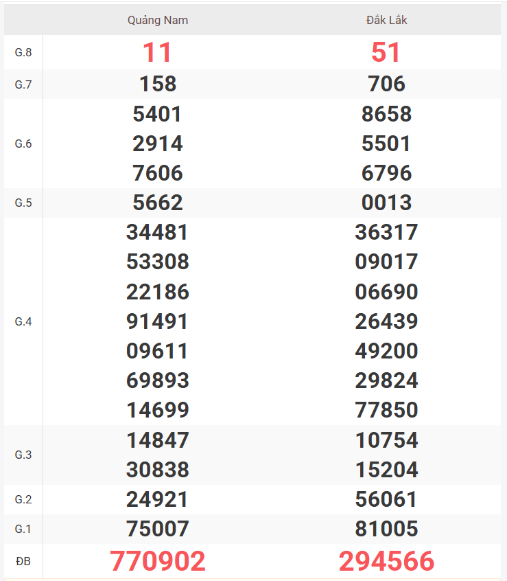 | Giải 8 | 58 |