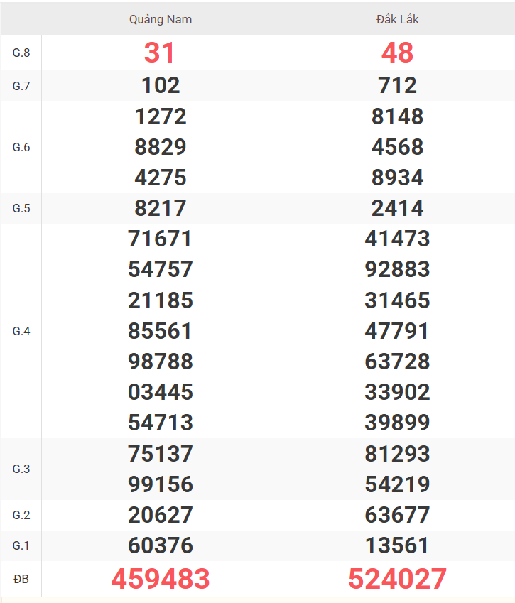 | Giải 8 | 47 |