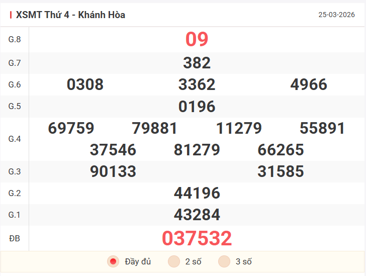 Cùng xem lại bảng kết quả XSMT kỳ trước 25/3/2026:
