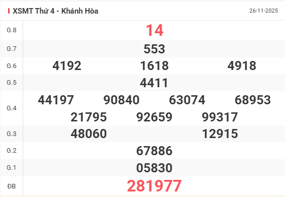 | Giải 8 | 27 |