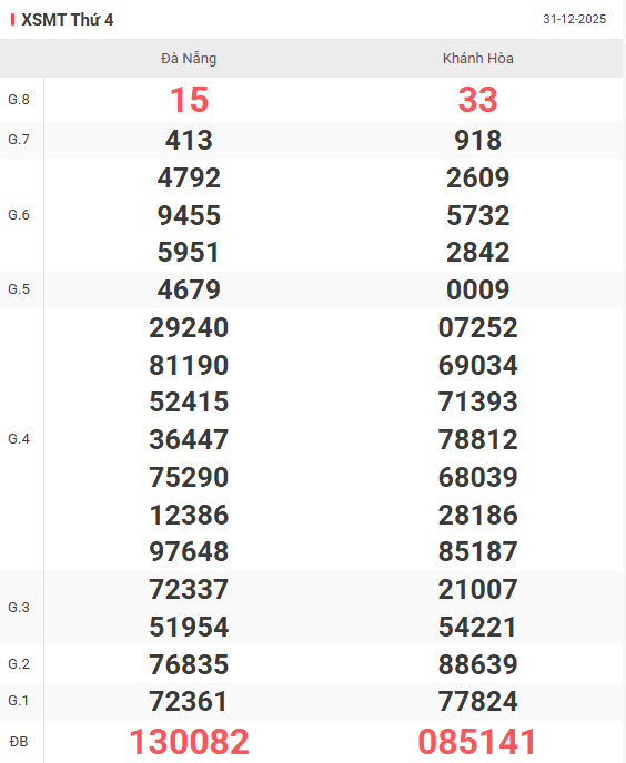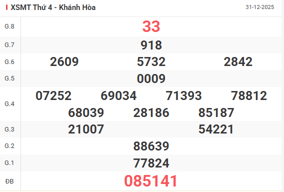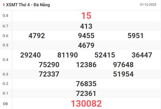 Cùng xem lại bảng kết quả XSMT kỳ trước 31/12/2025: