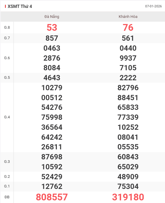 | Giải 8 | 55 |