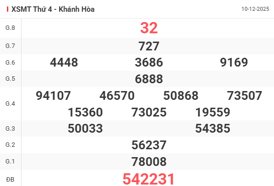 Cùng xem lại bảng kết quả XSMT kỳ trước 10/12/2025: